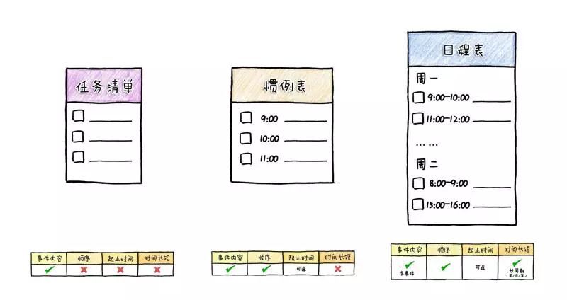 这三张表在功能上是不断地做加法,对使用者的能力要求不断提高的同时,对时间管理的效能也是同步提高的。表单的本质其实差异有限,善加利用、按需选择就一定能发挥作用,否则就只是一张表格而已。